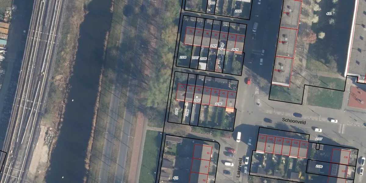 Gebruik de zoekbalk of klik op een perceel voor informatie over de adressen binnen dit perceel.