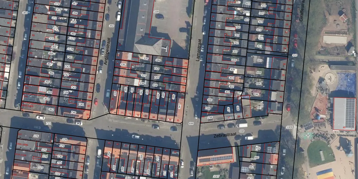 Gebruik de zoekbalk of klik op een perceel voor informatie over de adressen binnen dit perceel.