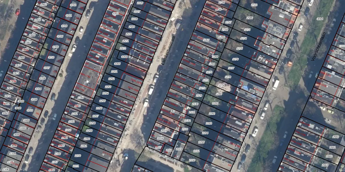 Lambertusstraat 156-B is gelegen op kadastraal perceel KLG00F2129. Deze kadastrale aanduiding is uniek en wordt gebruikt door het Kadaster om eigendomsrechten en andere zakelijke rechten vast te leggen. Het perceel maakt onderdeel uit van de kadastrale gemeente Kralingen.