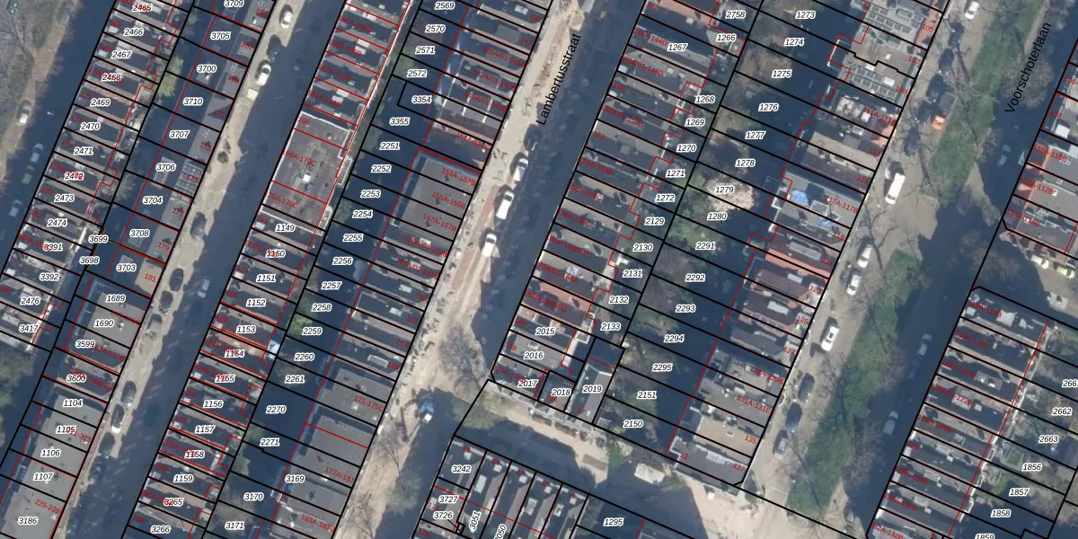 Lambertusstraat 164-A is gelegen op kadastraal perceel KLG00F2132. Deze kadastrale aanduiding is uniek en wordt gebruikt door het Kadaster om eigendomsrechten en andere zakelijke rechten vast te leggen. Het perceel maakt onderdeel uit van de kadastrale gemeente Kralingen.