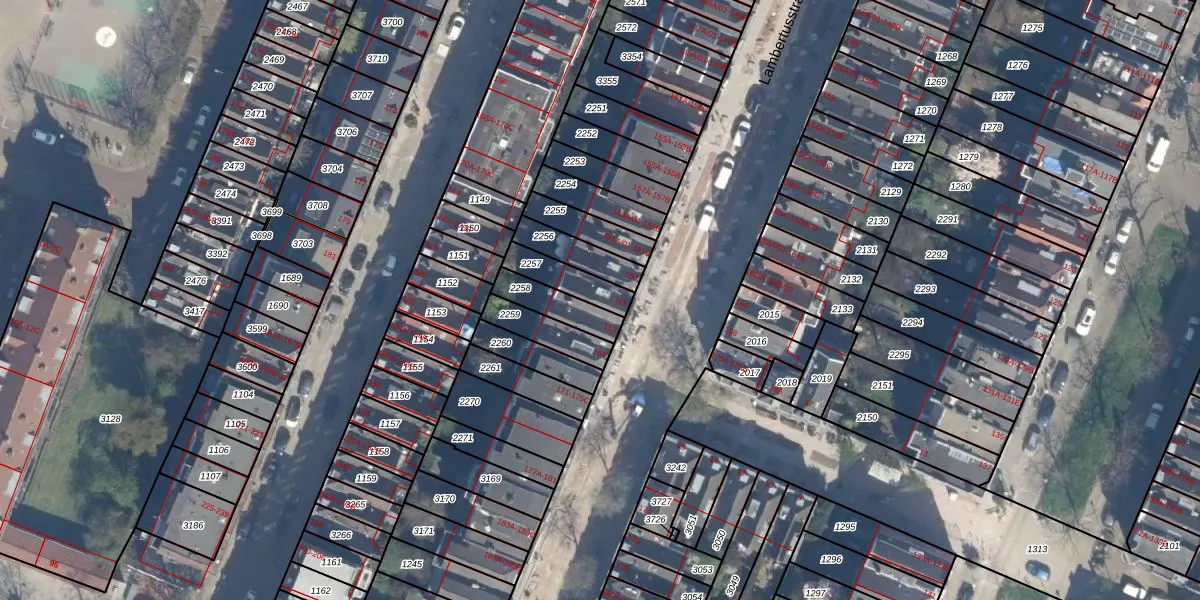 Het perceel waarop Lambertusstraat 165 staat heeft een oppervlakte van 104 m². Dit is een middelgroot perceel. De perceeloppervlakte wordt geregistreerd door het Kadaster. Gedetailleerde informatie over de maten van dit perceel kunt u vinden in het rapport Kadastrale kaart met maatvoering van Lambertusstraat 165.