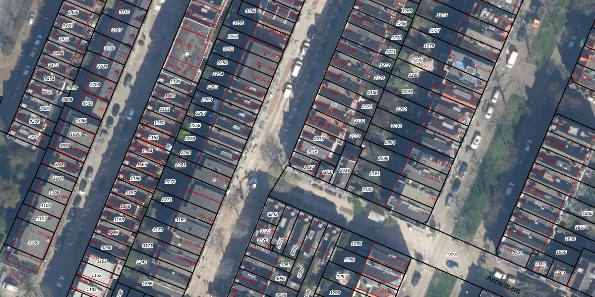 Gebruik de zoekbalk of klik op een perceel voor informatie over de adressen binnen dit perceel.