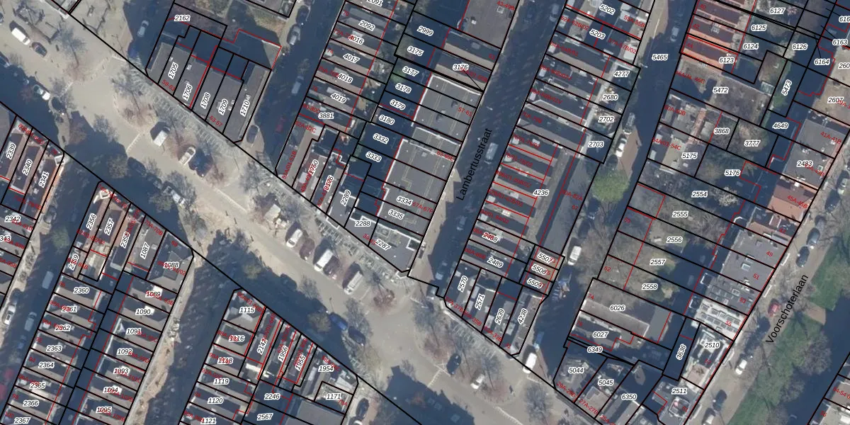 Lambertusstraat 67-B is gelegen op kadastraal perceel KLG00G3334. Deze kadastrale aanduiding is uniek en wordt gebruikt door het Kadaster om eigendomsrechten en andere zakelijke rechten vast te leggen. Het perceel maakt onderdeel uit van de kadastrale gemeente Kralingen.