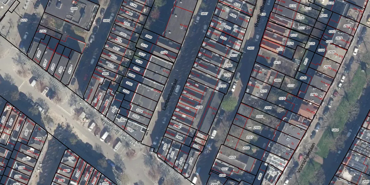 Het perceel waarop Lambertusstraat 78-02 staat heeft een oppervlakte van 510 m². Dit is een groot perceel. De perceeloppervlakte wordt geregistreerd door het Kadaster. Gedetailleerde informatie over de maten van dit perceel kunt u vinden in het rapport Kadastrale kaart met maatvoering van Lambertusstraat 78-02.