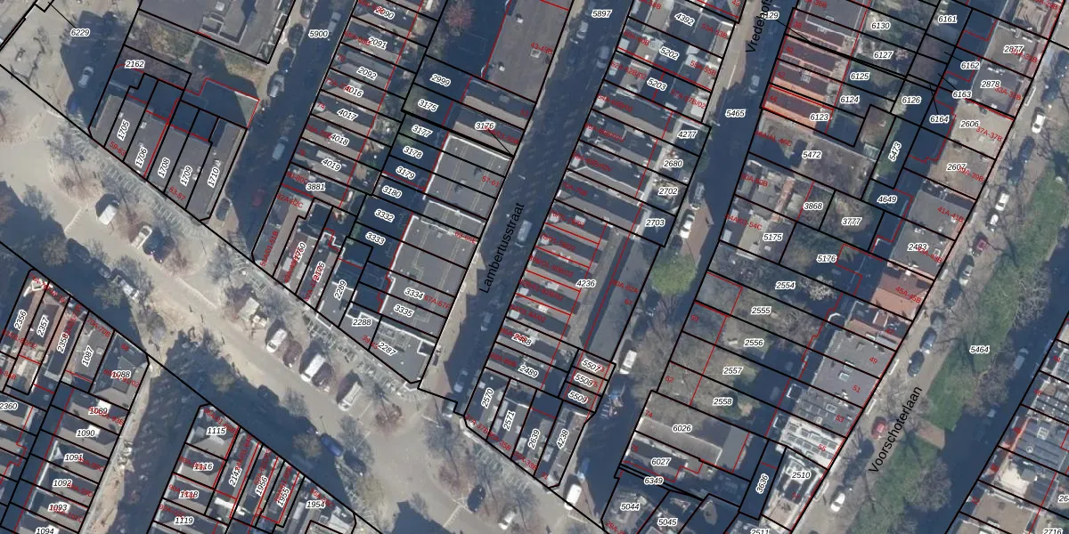 Het perceel waarop Lambertusstraat 80-B-02 staat heeft een oppervlakte van 510 m². Dit is een groot perceel. De perceeloppervlakte wordt geregistreerd door het Kadaster. Gedetailleerde informatie over de maten van dit perceel kunt u vinden in het rapport Kadastrale kaart met maatvoering van Lambertusstraat 80-B-02.