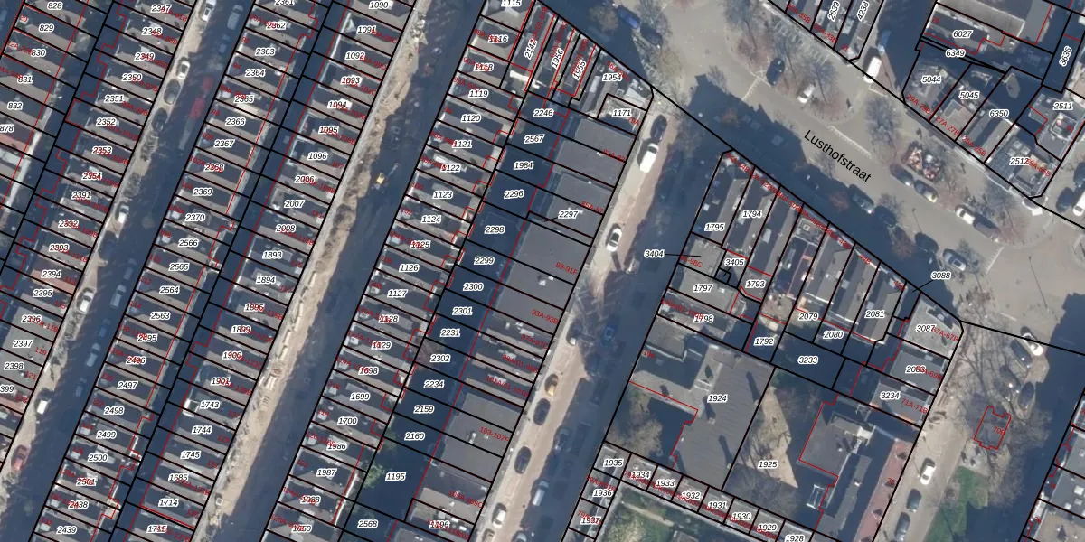 Lambertusstraat 91-E is gelegen op kadastraal perceel KLG00F2298. Deze kadastrale aanduiding is uniek en wordt gebruikt door het Kadaster om eigendomsrechten en andere zakelijke rechten vast te leggen. Het perceel maakt onderdeel uit van de kadastrale gemeente Kralingen.