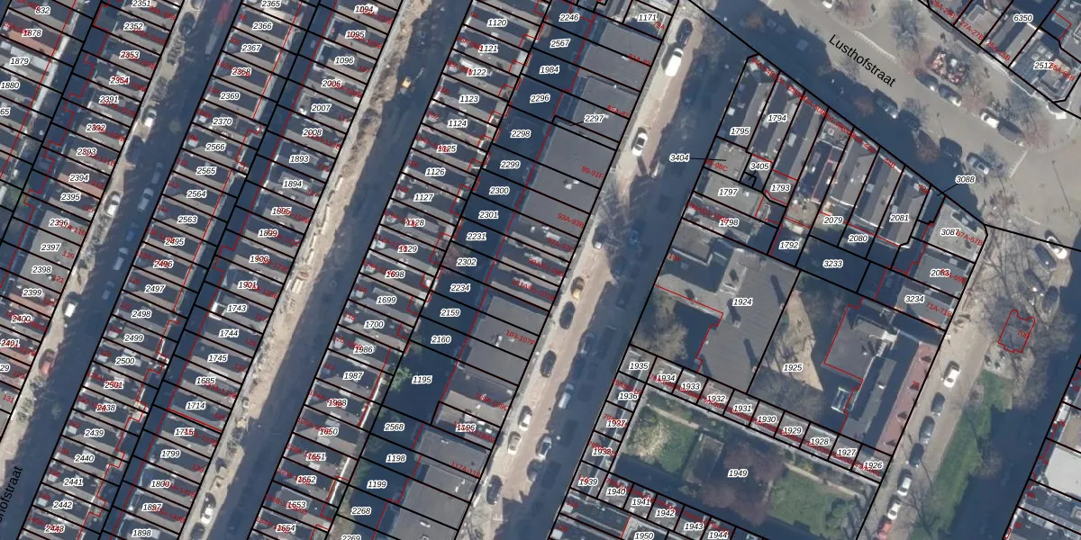 Het perceel waarop Lambertusstraat 99-B staat heeft een oppervlakte van 108 m². Dit is een middelgroot perceel. De perceeloppervlakte wordt geregistreerd door het Kadaster. Gedetailleerde informatie over de maten van dit perceel kunt u vinden in het rapport Kadastrale kaart met maatvoering van Lambertusstraat 99-B.