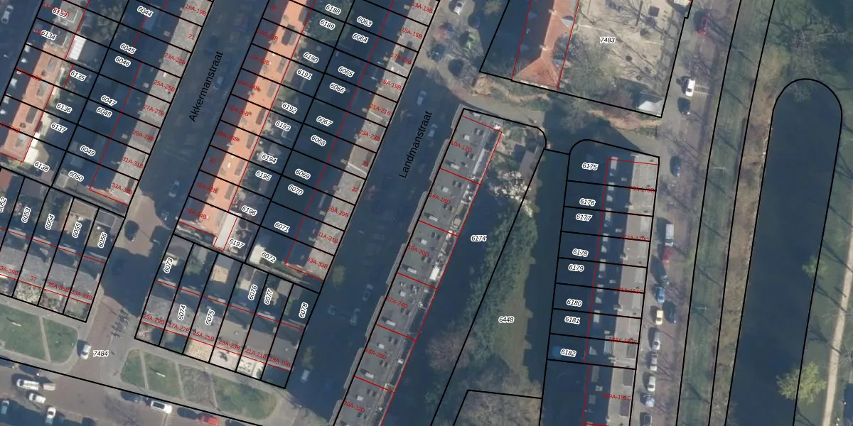 Het perceel waarop Landmanstraat 16-C staat heeft een oppervlakte van 1734 m². Dit is een zeer groot perceel. De perceeloppervlakte wordt geregistreerd door het Kadaster. Gedetailleerde informatie over de maten van dit perceel kunt u vinden in het rapport Kadastrale kaart met maatvoering van Landmanstraat 16-C.