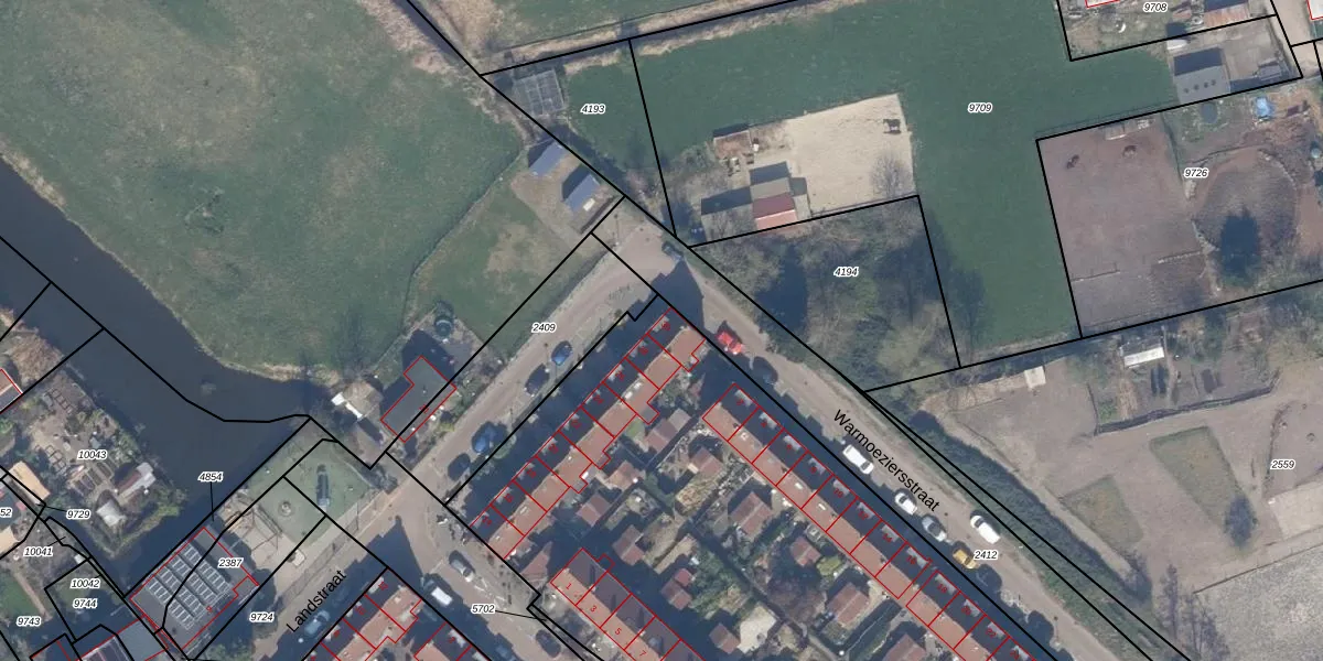 Het perceel waarop Landstraat 30 staat heeft een oppervlakte van 5591 m². Dit is een zeer groot perceel. De perceeloppervlakte wordt geregistreerd door het Kadaster. Gedetailleerde informatie over de maten van dit perceel kunt u vinden in het rapport Kadastrale kaart met maatvoering van Landstraat 30.