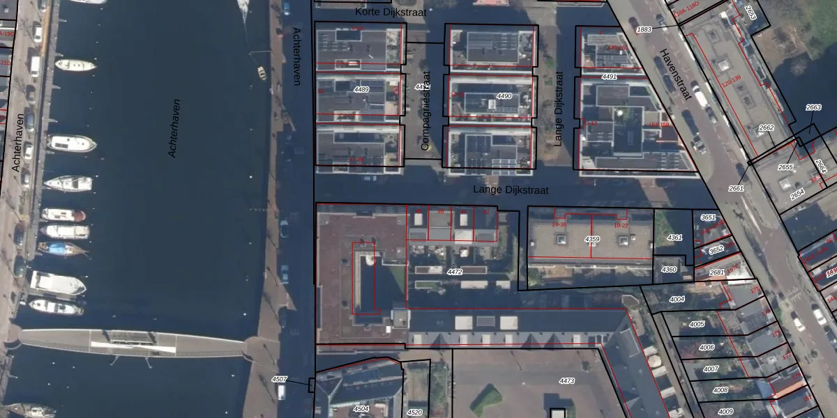 Het adres ligt op het perceel DHV00-A-4472, dat zich in de kadastrale gemeente Delfshaven bevindt. Het perceel is met 3170 m² relatief groot. Het gemiddelde ligt in de kadastrale gemeente Delfshaven op 628,53 m². De grootste perceeloppervlakte in de kadastrale gemeente is 22,2 ha. De kleinste oppervlakte bedraagt 0 m². Op het perceel liggen in totaal 52 adressen. De huidige grenzen van het perceel zijn digitaal in de Basisregistratie Kadaster (BRK) geregistreerd op 23-11-2009.