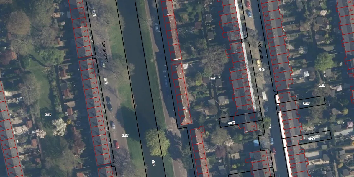 Het perceel waarop het adres ligt is RTD05-V-6092. De afkorting 'RTD05' staat voor kadastrale gemeente Rotterdam. De oppervlakte van het perceel is 8924 m². Dat is groter dan gemiddeld in Rotterdam, waar de gemiddelde perceeloppervlakte op 1401,79 m² ligt. Het kleinste perceel in de kadastrale gemeente is 0 m² groot. De grootste perceeloppervlakte is 36,8 ha. Er zijn 56 adressen aanwezig op het perceel. De laatste wijziging in het de Basisregistratie Kadaster (BRK) was op 24-02-2026.
