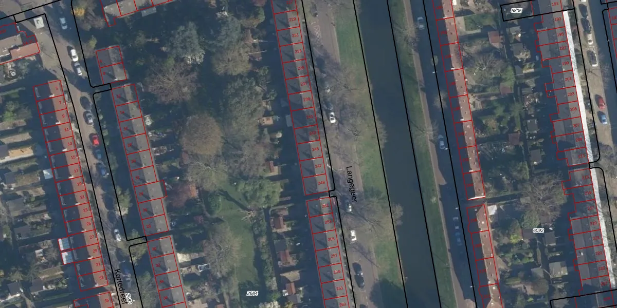 Langegeer 245 is gelegen op kadastraal perceel CLS00F2684. Deze kadastrale aanduiding is uniek en wordt gebruikt door het Kadaster om eigendomsrechten en andere zakelijke rechten vast te leggen. Het perceel maakt onderdeel uit van de kadastrale gemeente Charlois.