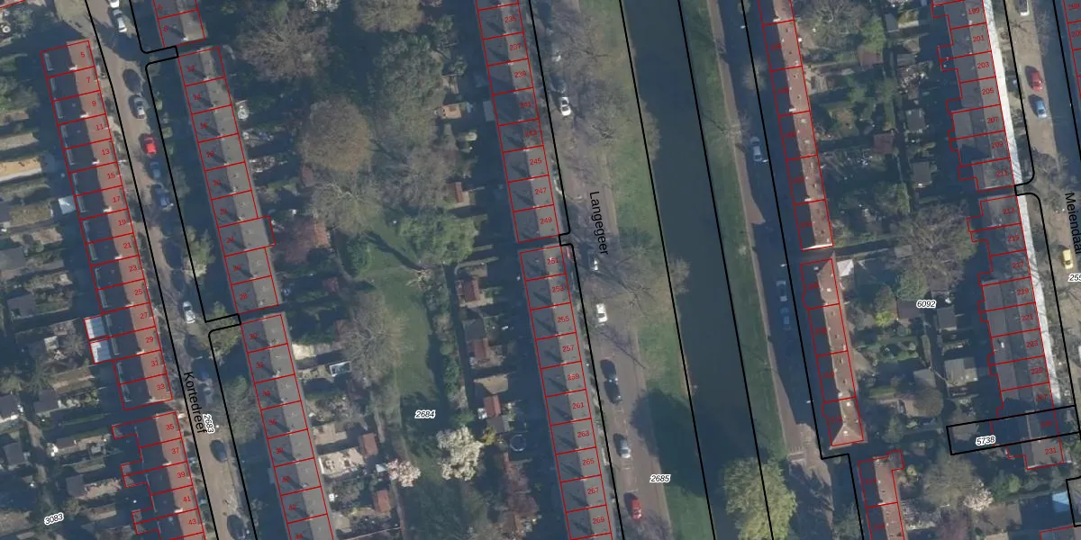 Langegeer 251 is gelegen op kadastraal perceel CLS00F2684. Deze kadastrale aanduiding is uniek en wordt gebruikt door het Kadaster om eigendomsrechten en andere zakelijke rechten vast te leggen. Het perceel maakt onderdeel uit van de kadastrale gemeente Charlois.