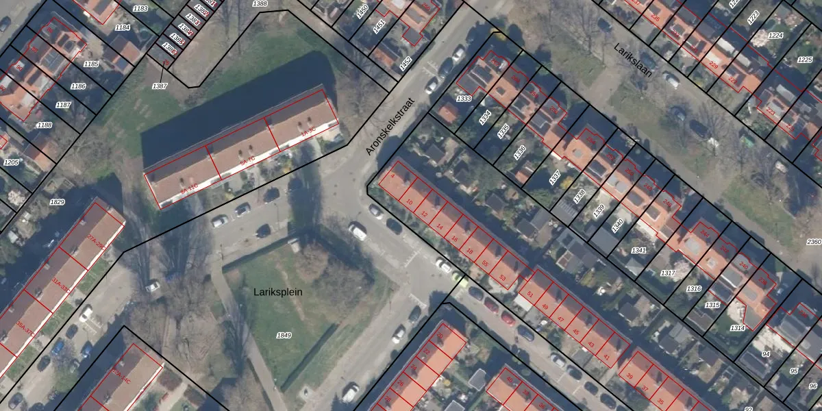 Het perceel waarop Lariksplein 10 staat heeft een oppervlakte van 4498 m². Dit is een zeer groot perceel. De perceeloppervlakte wordt geregistreerd door het Kadaster. Gedetailleerde informatie over de maten van dit perceel kunt u vinden in het rapport Kadastrale kaart met maatvoering van Lariksplein 10.