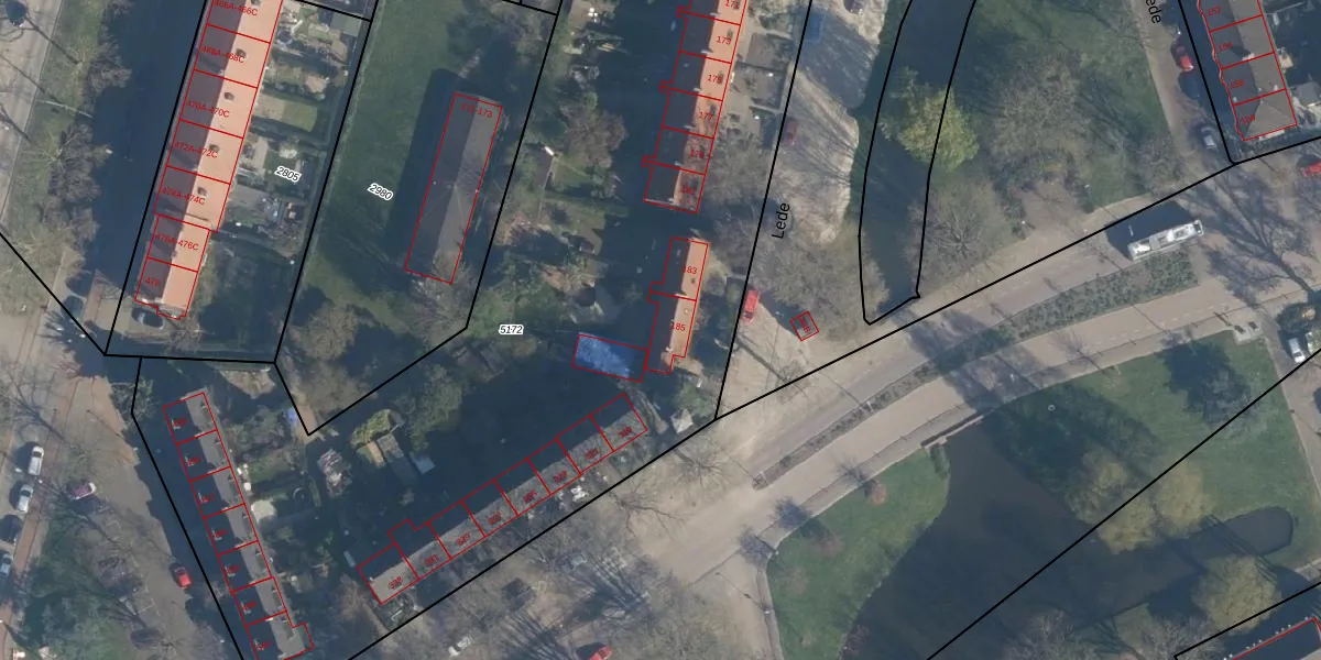 Het perceel waarop Lede 185 staat heeft een oppervlakte van 5016 m². Dit is een zeer groot perceel. De perceeloppervlakte wordt geregistreerd door het Kadaster. Gedetailleerde informatie over de maten van dit perceel kunt u vinden in het rapport Kadastrale kaart met maatvoering van Lede 185.