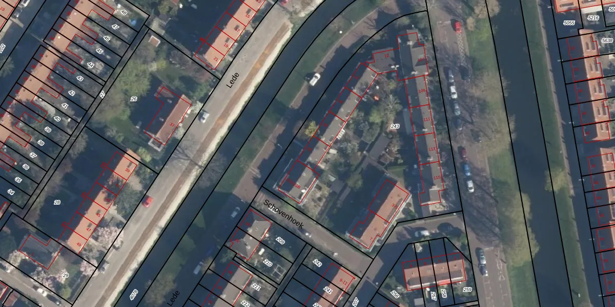 Het perceel waarop Lede 20 staat heeft een oppervlakte van 2980 m². Dit is een zeer groot perceel. De perceeloppervlakte wordt geregistreerd door het Kadaster. Gedetailleerde informatie over de maten van dit perceel kunt u vinden in het rapport Kadastrale kaart met maatvoering van Lede 20.
