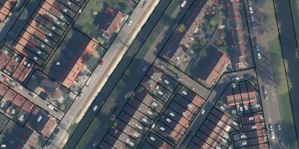 Het perceel waarop Lede 24 staat heeft een oppervlakte van 180 m². Dit is een middelgroot perceel. De perceeloppervlakte wordt geregistreerd door het Kadaster. Gedetailleerde informatie over de maten van dit perceel kunt u vinden in het rapport Kadastrale kaart met maatvoering van Lede 24.