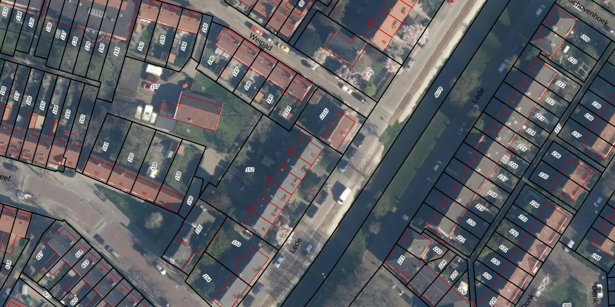 Het perceel waarop Lede 61 staat heeft een oppervlakte van 1063 m². Dit is een zeer groot perceel. De perceeloppervlakte wordt geregistreerd door het Kadaster. Gedetailleerde informatie over de maten van dit perceel kunt u vinden in het rapport Kadastrale kaart met maatvoering van Lede 61.
