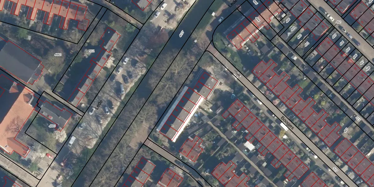 Het perceel waarop Lede 86 staat heeft een oppervlakte van 9846 m². Dit is een zeer groot perceel. De perceeloppervlakte wordt geregistreerd door het Kadaster. Gedetailleerde informatie over de maten van dit perceel kunt u vinden in het rapport Kadastrale kaart met maatvoering van Lede 86.