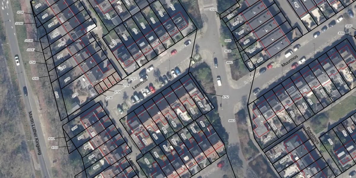 Gebruik de zoekbalk of klik op een perceel voor informatie over de adressen binnen dit perceel.