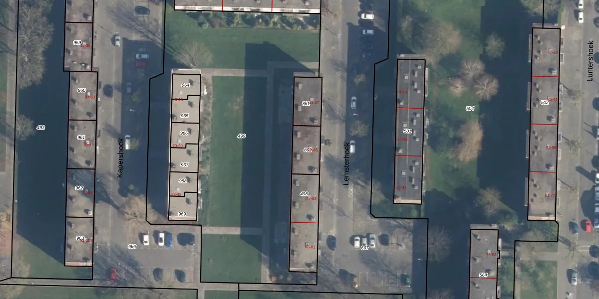 Lemsterhoek 41 is gelegen op kadastraal perceel CLS00K862. Deze kadastrale aanduiding is uniek en wordt gebruikt door het Kadaster om eigendomsrechten en andere zakelijke rechten vast te leggen. Het perceel maakt onderdeel uit van de kadastrale gemeente Charlois.