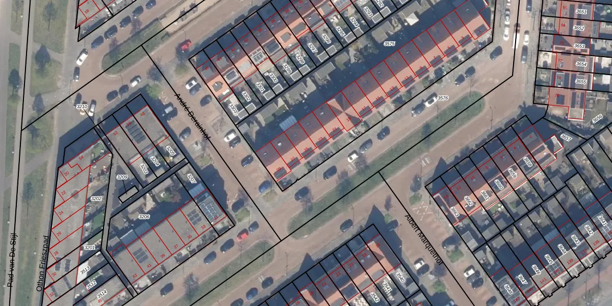 Het perceel waarop Leo Gestelstraat 25 staat heeft een oppervlakte van 2455 m². Dit is een zeer groot perceel. De perceeloppervlakte wordt geregistreerd door het Kadaster. Gedetailleerde informatie over de maten van dit perceel kunt u vinden in het rapport Kadastrale kaart met maatvoering van Leo Gestelstraat 25.