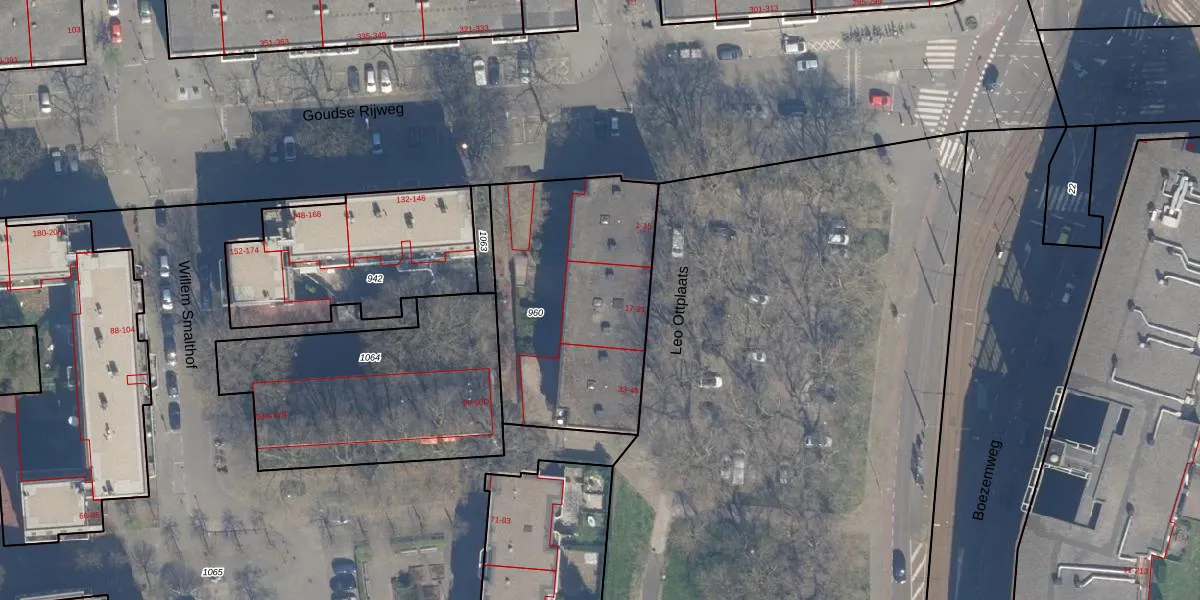 Leo Ottplaats 19 is gelegen op kadastraal perceel RTD04AE960. Deze kadastrale aanduiding is uniek en wordt gebruikt door het Kadaster om eigendomsrechten en andere zakelijke rechten vast te leggen. Het perceel maakt onderdeel uit van de kadastrale gemeente Rotterdam.