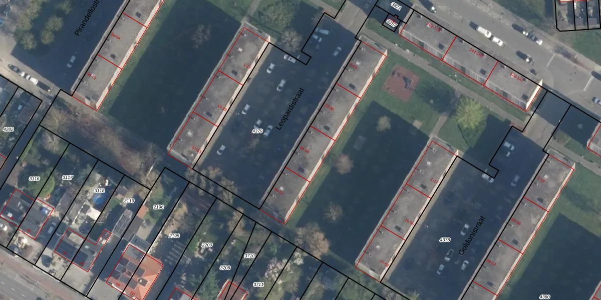 Het perceel waarop Leopardistraat 38 staat heeft een oppervlakte van 1,9 ha. Dit is een zeer groot perceel. De perceeloppervlakte wordt geregistreerd door het Kadaster. Gedetailleerde informatie over de maten van dit perceel kunt u vinden in het rapport Kadastrale kaart met maatvoering van Leopardistraat 38.