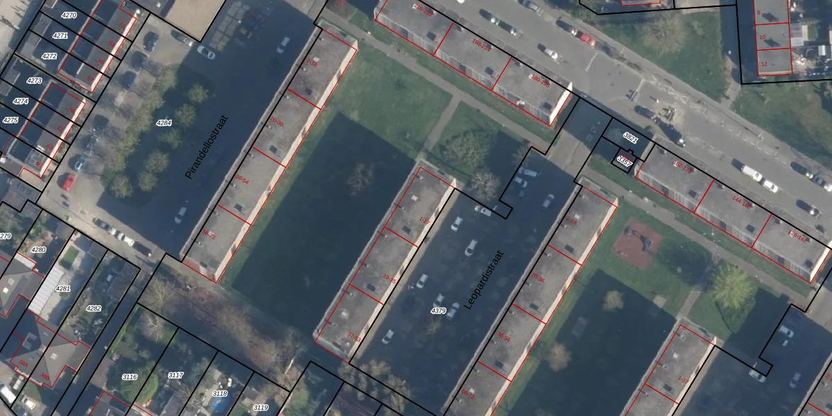 Het perceel waarop Leopardistraat 5 staat heeft een oppervlakte van 1,9 ha. Dit is een zeer groot perceel. De perceeloppervlakte wordt geregistreerd door het Kadaster. Gedetailleerde informatie over de maten van dit perceel kunt u vinden in het rapport Kadastrale kaart met maatvoering van Leopardistraat 5.