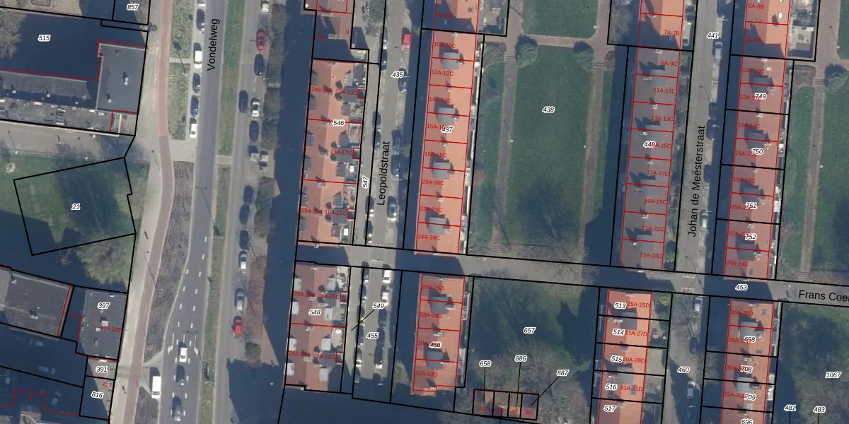 Leopoldstraat 22-C is gelegen op kadastraal perceel RTD04AE437. Deze kadastrale aanduiding is uniek en wordt gebruikt door het Kadaster om eigendomsrechten en andere zakelijke rechten vast te leggen. Het perceel maakt onderdeel uit van de kadastrale gemeente Rotterdam.
