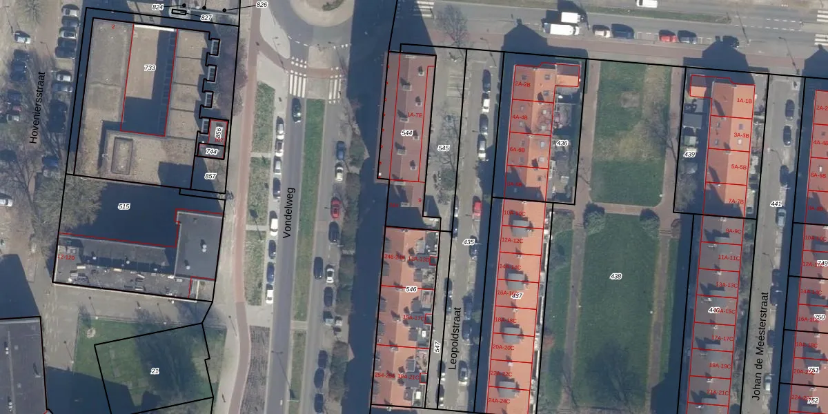 Leopoldstraat 9 is gelegen op kadastraal perceel RTD04AE544. Deze kadastrale aanduiding is uniek en wordt gebruikt door het Kadaster om eigendomsrechten en andere zakelijke rechten vast te leggen. Het perceel maakt onderdeel uit van de kadastrale gemeente Rotterdam.