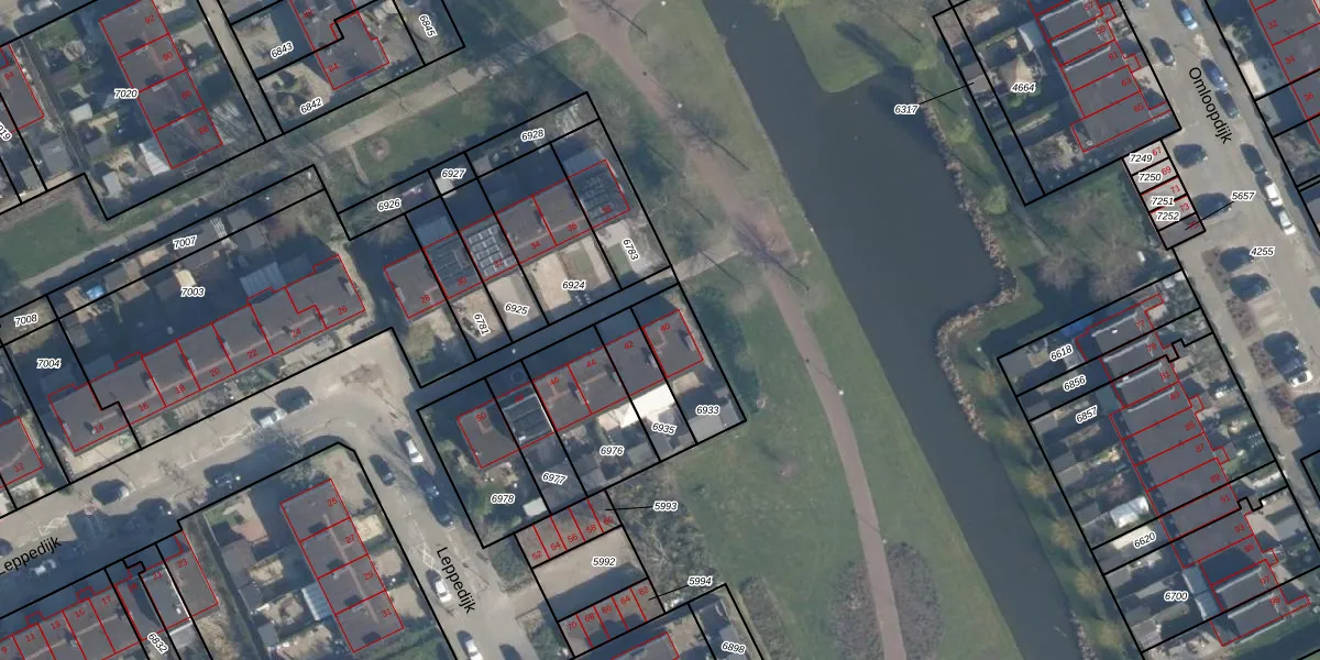 Gebruik de zoekbalk of klik op een perceel voor informatie over de adressen binnen dit perceel.