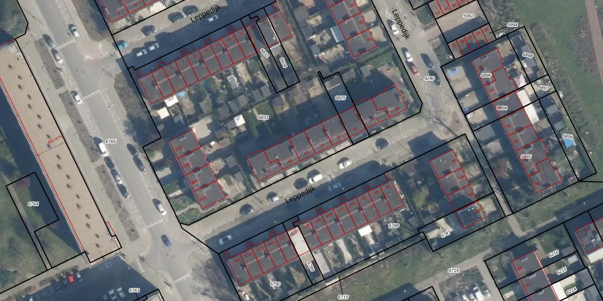 Leppedijk 43 is gelegen op kadastraal perceel ISM01B6833. Deze kadastrale aanduiding is uniek en wordt gebruikt door het Kadaster om eigendomsrechten en andere zakelijke rechten vast te leggen. Het perceel maakt onderdeel uit van de kadastrale gemeente IJsselmonde.