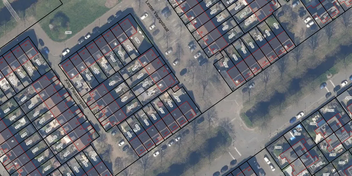 Het perceel waarop Lester Youngstraat 19 staat heeft een oppervlakte van 8995 m². Dit is een zeer groot perceel. De perceeloppervlakte wordt geregistreerd door het Kadaster. Gedetailleerde informatie over de maten van dit perceel kunt u vinden in het rapport Kadastrale kaart met maatvoering van Lester Youngstraat 19.