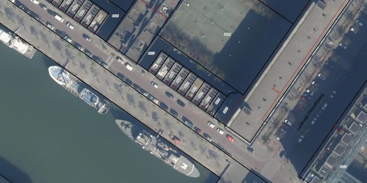 Het perceel waarop het adres ligt is RTD05-Q-6510. De afkorting 'RTD05' staat voor kadastrale gemeente Rotterdam. Het perceel is kleiner dan gemiddeld in Rotterdam. Het perceel is 65 m² groot, terwijl het gemiddelde ligt op 1401,79 m². Het kleinste perceel in de kadastrale gemeente is 0 m² groot. De grootste perceeloppervlakte is 36,8 ha. Dit is het enige adres dat aanwezig is op het perceel. In de Basisregistratie Kadaster (BRK) werden de grenzen van het perceel geregistreerd op 17-07-2003.