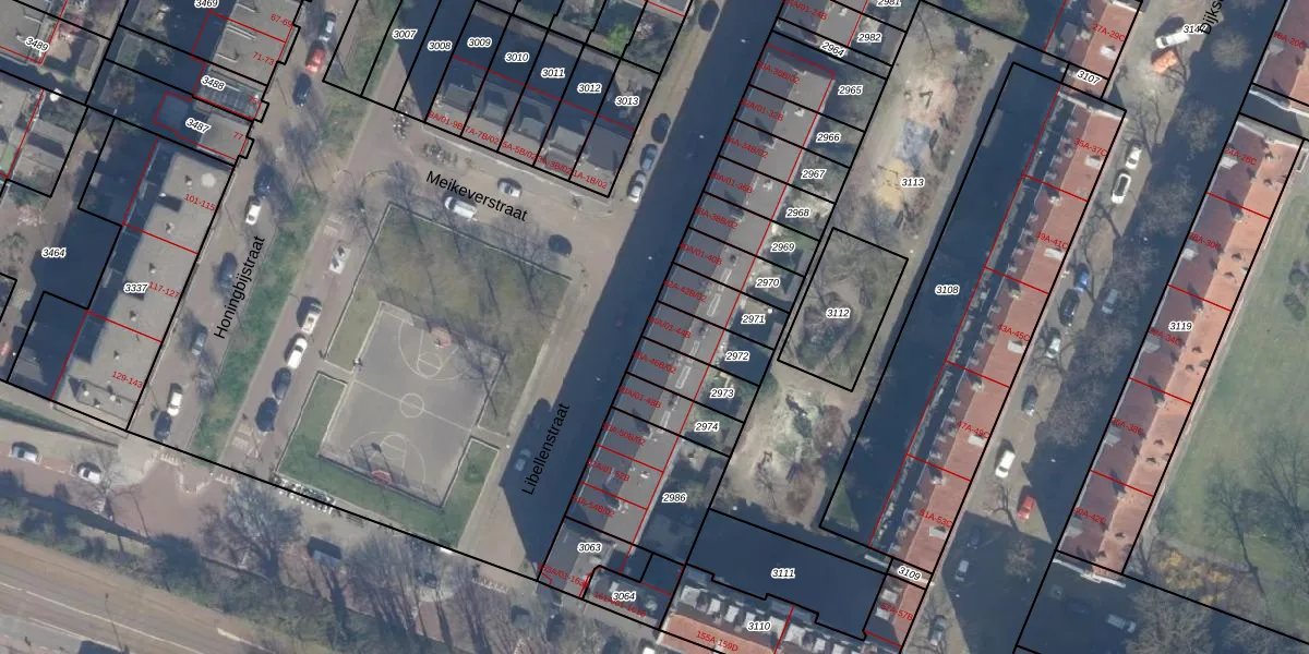 Libellenstraat 44-A-02 is gelegen op kadastraal perceel KLG00F2972. Deze kadastrale aanduiding is uniek en wordt gebruikt door het Kadaster om eigendomsrechten en andere zakelijke rechten vast te leggen. Het perceel maakt onderdeel uit van de kadastrale gemeente Kralingen.