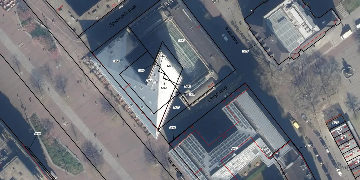 Het perceel waarop Librijesteeg 245 staat heeft een oppervlakte van 1639 m². Dit is een zeer groot perceel. De perceeloppervlakte wordt geregistreerd door het Kadaster. Gedetailleerde informatie over de maten van dit perceel kunt u vinden in het rapport Kadastrale kaart met maatvoering van Librijesteeg 245.