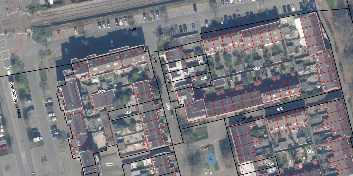Gebruik de zoekbalk of klik op een perceel voor informatie over de adressen binnen dit perceel.
