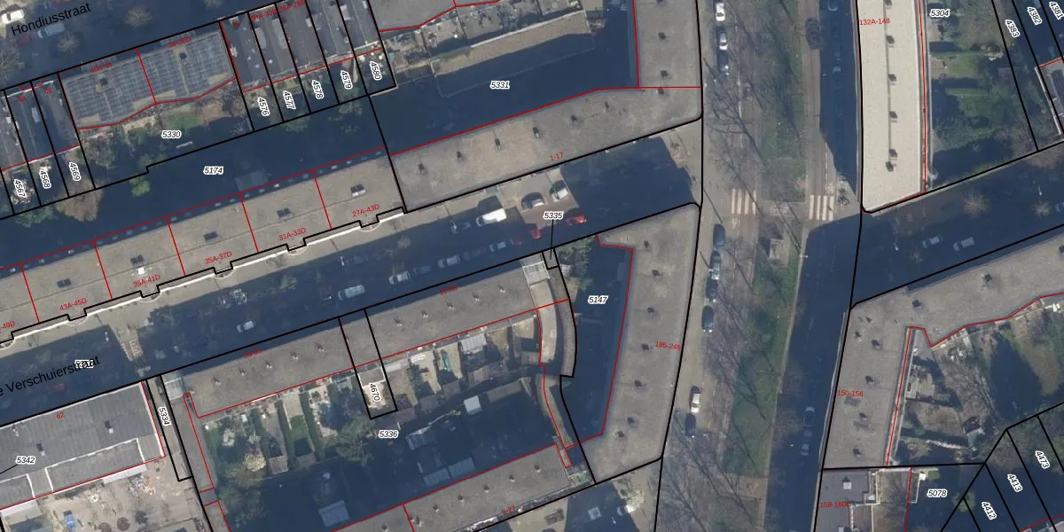 Lieve Verschuierstraat 16 is gelegen op kadastraal perceel DHV00C5336. Deze kadastrale aanduiding is uniek en wordt gebruikt door het Kadaster om eigendomsrechten en andere zakelijke rechten vast te leggen. Het perceel maakt onderdeel uit van de kadastrale gemeente Delfshaven.
