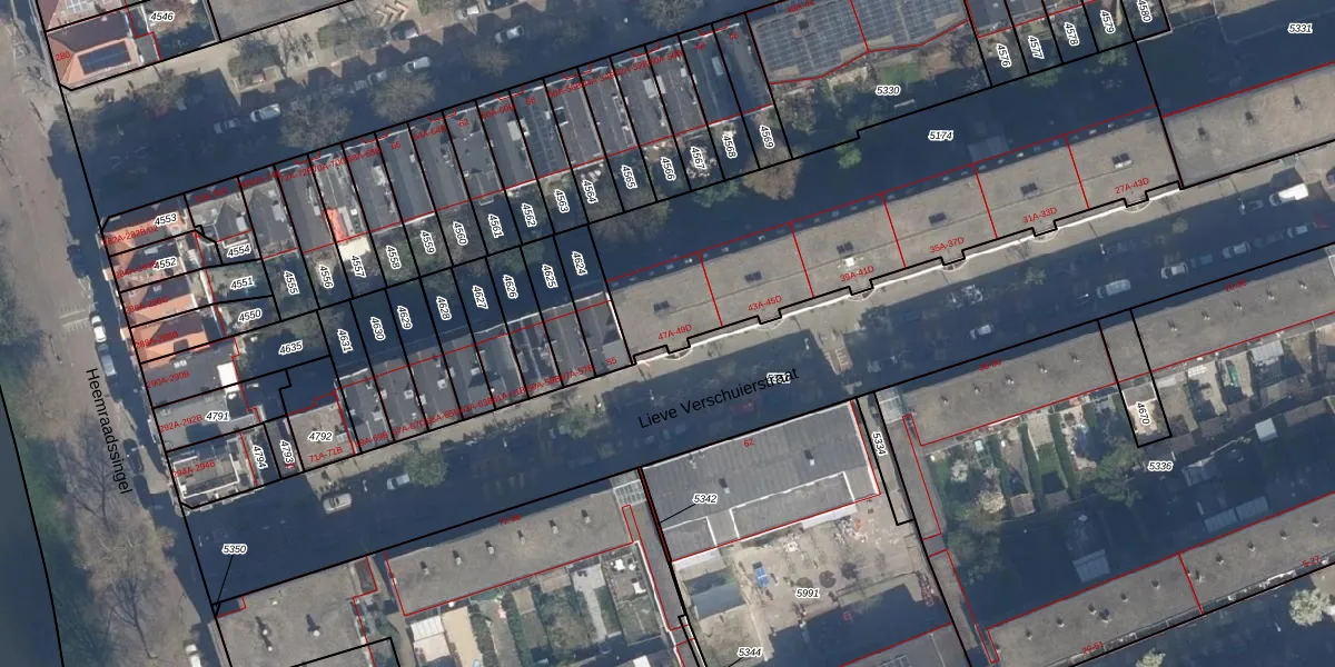 Lieve Verschuierstraat 49-C is gelegen op kadastraal perceel DHV00C5174. Deze kadastrale aanduiding is uniek en wordt gebruikt door het Kadaster om eigendomsrechten en andere zakelijke rechten vast te leggen. Het perceel maakt onderdeel uit van de kadastrale gemeente Delfshaven.
