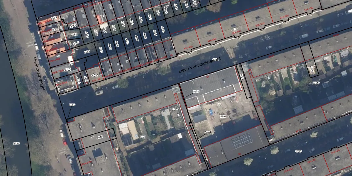 Lieve Verschuierstraat 76 is gelegen op kadastraal perceel DHV00C5341. Deze kadastrale aanduiding is uniek en wordt gebruikt door het Kadaster om eigendomsrechten en andere zakelijke rechten vast te leggen. Het perceel maakt onderdeel uit van de kadastrale gemeente Delfshaven.
