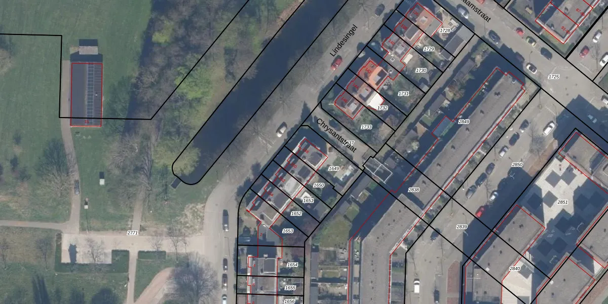 Gebruik de zoekbalk of klik op een perceel voor informatie over de adressen binnen dit perceel.