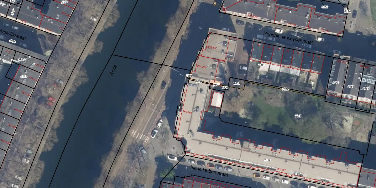 Linker Rottekade 266 is gelegen op kadastraal perceel RTD07R7429. Deze kadastrale aanduiding is uniek en wordt gebruikt door het Kadaster om eigendomsrechten en andere zakelijke rechten vast te leggen. Het perceel maakt onderdeel uit van de kadastrale gemeente Rotterdam.