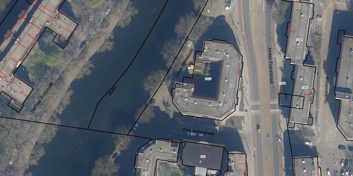 Linker Rottekade 318 is gelegen op kadastraal perceel RTD07R7410. Deze kadastrale aanduiding is uniek en wordt gebruikt door het Kadaster om eigendomsrechten en andere zakelijke rechten vast te leggen. Het perceel maakt onderdeel uit van de kadastrale gemeente Rotterdam.