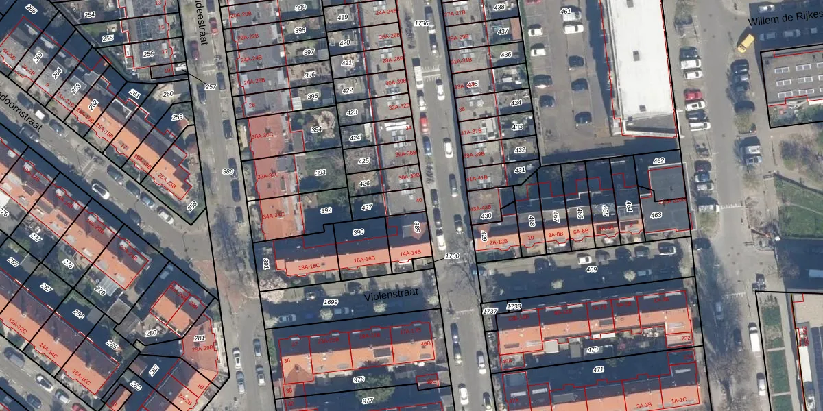Het perceel waarop Lisbloemstraat 40 staat heeft een oppervlakte van 106 m². Dit is een middelgroot perceel. De perceeloppervlakte wordt geregistreerd door het Kadaster. Gedetailleerde informatie over de maten van dit perceel kunt u vinden in het rapport Kadastrale kaart met maatvoering van Lisbloemstraat 40.
