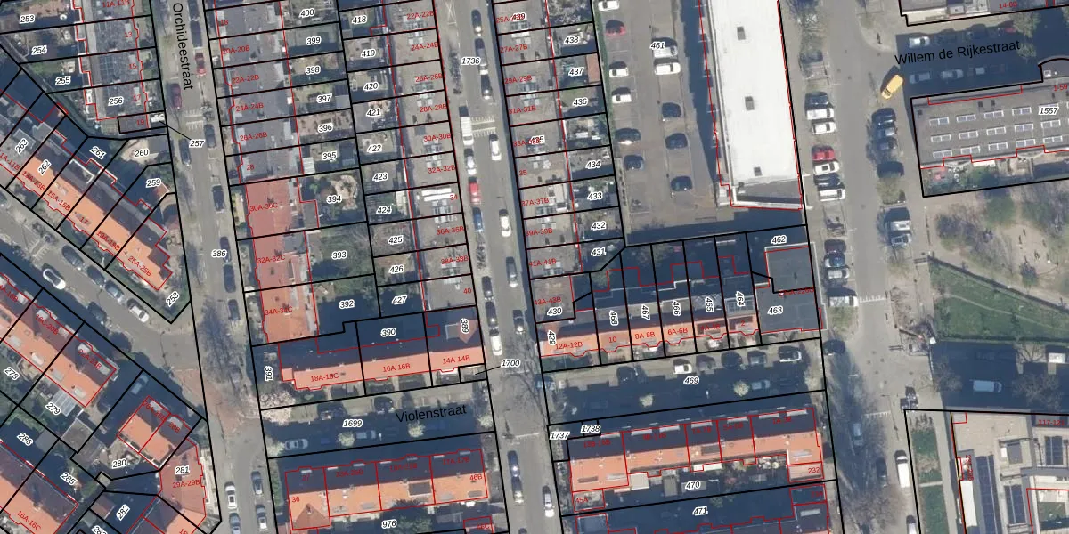 Het perceel waarop Lisbloemstraat 41-A staat heeft een oppervlakte van 99 m². Dit is een klein perceel. De perceeloppervlakte wordt geregistreerd door het Kadaster. Gedetailleerde informatie over de maten van dit perceel kunt u vinden in het rapport Kadastrale kaart met maatvoering van Lisbloemstraat 41-A.