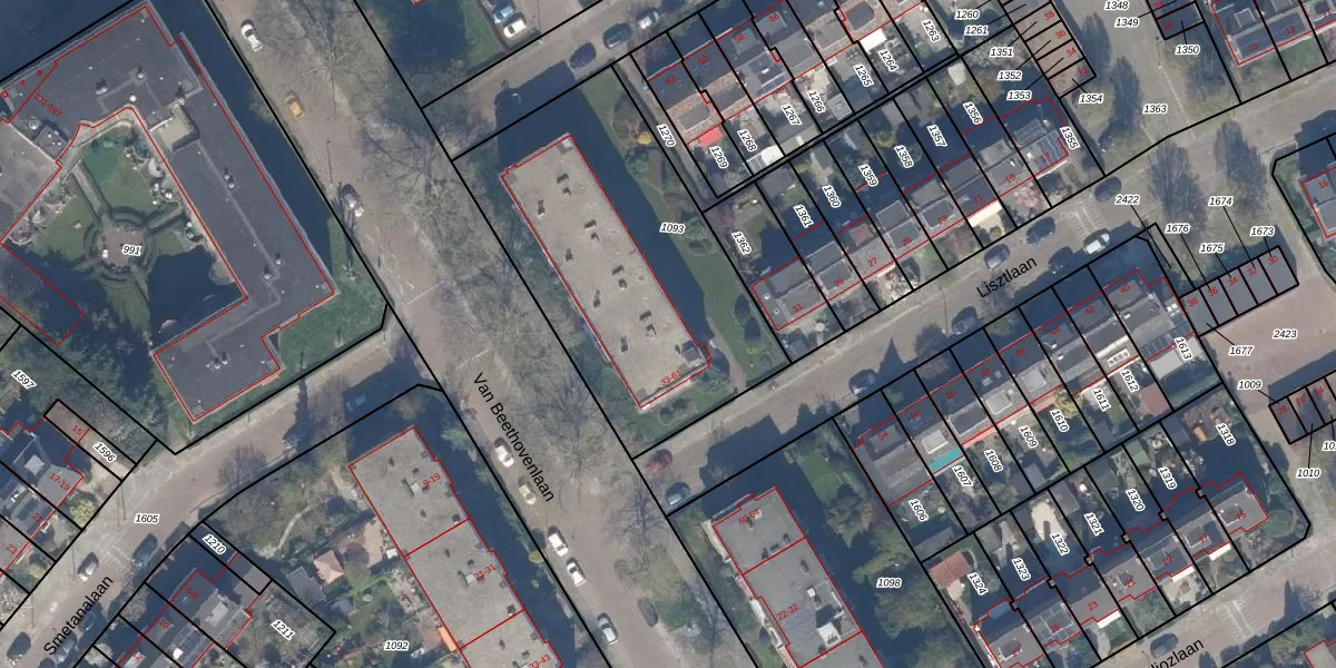 Het perceel waarop Lisztlaan 57 staat heeft een oppervlakte van 1470 m². Dit is een zeer groot perceel. De perceeloppervlakte wordt geregistreerd door het Kadaster. Gedetailleerde informatie over de maten van dit perceel kunt u vinden in het rapport Kadastrale kaart met maatvoering van Lisztlaan 57.