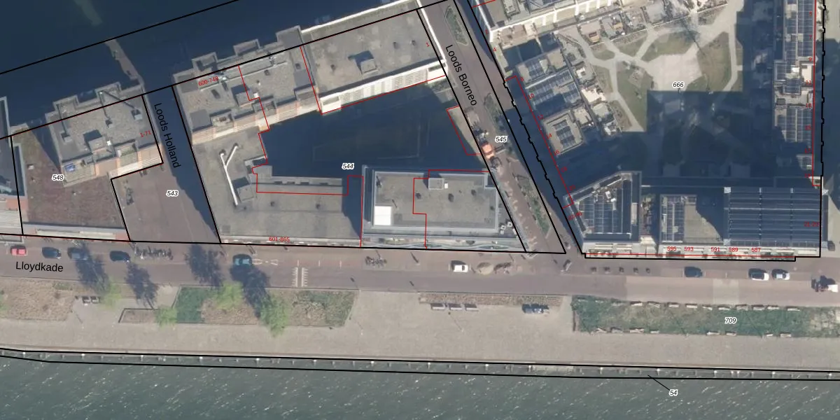 Het perceel waarop Lloydkade 625 staat heeft een oppervlakte van 3270 m². Dit is een zeer groot perceel. De perceeloppervlakte wordt geregistreerd door het Kadaster. Gedetailleerde informatie over de maten van dit perceel kunt u vinden in het rapport Kadastrale kaart met maatvoering van Lloydkade 625.