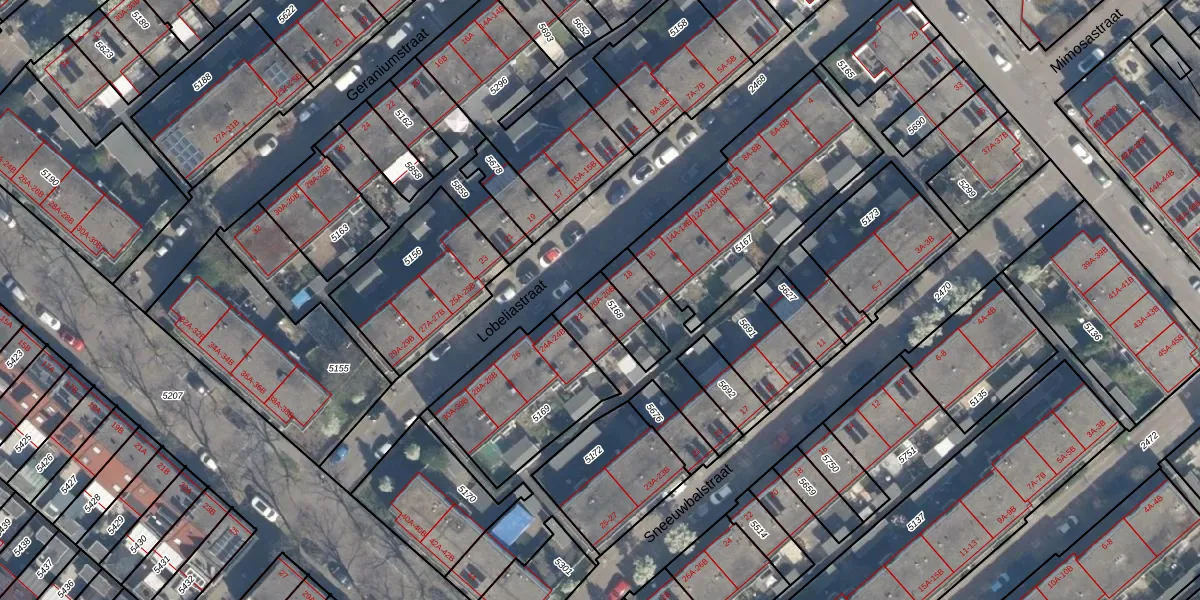 Lobeliastraat 20-B is gelegen op kadastraal perceel CLS00G5168. Deze kadastrale aanduiding is uniek en wordt gebruikt door het Kadaster om eigendomsrechten en andere zakelijke rechten vast te leggen. Het perceel maakt onderdeel uit van de kadastrale gemeente Charlois.