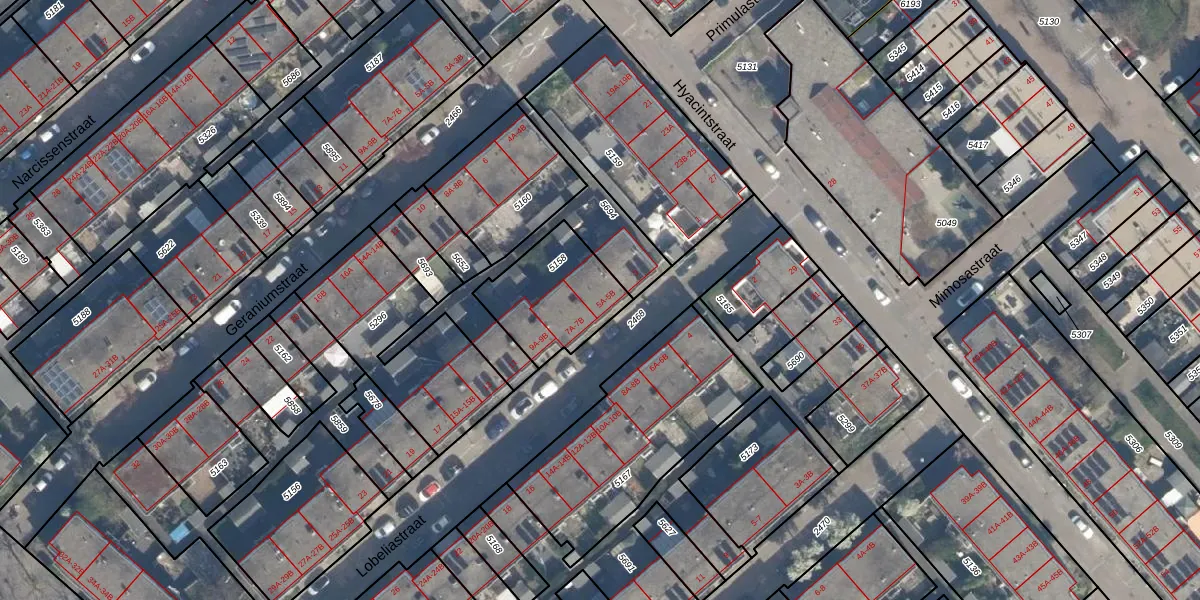 Lobeliastraat 5-A is gelegen op kadastraal perceel CLS00G5158. Deze kadastrale aanduiding is uniek en wordt gebruikt door het Kadaster om eigendomsrechten en andere zakelijke rechten vast te leggen. Het perceel maakt onderdeel uit van de kadastrale gemeente Charlois.